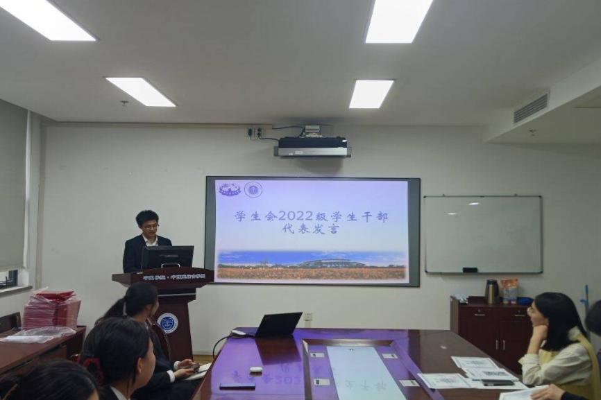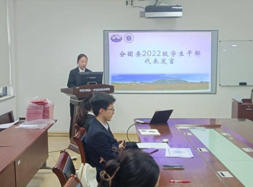 分团委2022级副书记史潇璇进行就职发言。她讲述了自己这一年多来在分团委的点点滴滴。她感谢分团委带来的机遇和挑战,也希望新一届的分团委能够继续努力,共同创造分团委更好的明天。张艳梅老师为2021级分团委员工骨干颁发聘书。