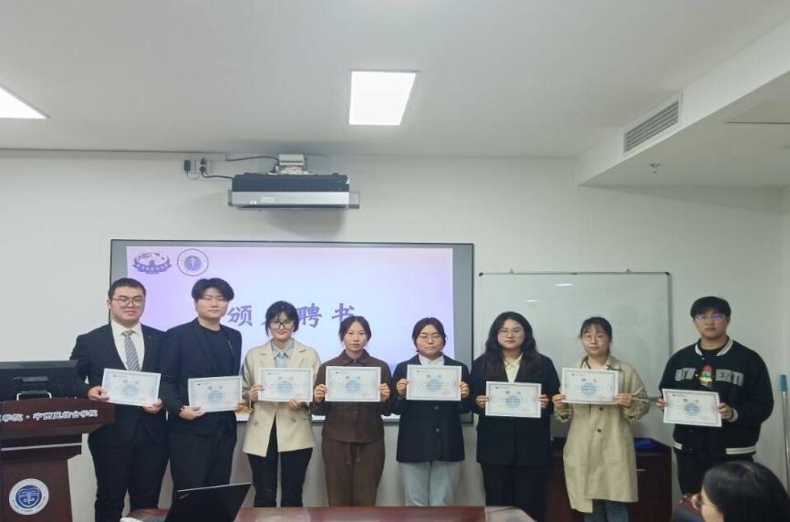 2022级员工会主席孙文广进行就职发言。他代表员工会2022级员工骨干表示,在日后工作中,新一届员工会继往开来,将员工会打造成具有活力、凝聚力、创造力的员工组织。张艳梅老师为2021级员工会员工骨干颁发聘书、合影留念。