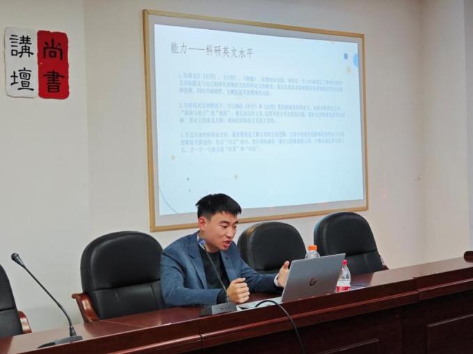 第一位主讲人周媛媛博士为大家带来了主题为“即刻出发,路就在脚下”的考研经验的分享。周媛媛博士从“为什么要考研、如何参加考研、考研需要准备什么”三方面进行阐述,启迪同学们思考考研的初心。