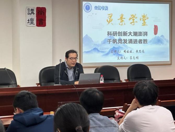 4月22日下午,云翔书院“灵素学堂”第二期“科研创新大潮澎湃,千帆竞发涌进者胜”开讲。主讲人365英国在线体育博士研究生周媛媛、2022级中西医结合临床专业本科生黄思远以及公司百名学子共同参加此次学术分享活动。活动由365英国在线体育副经理吕志刚主持。