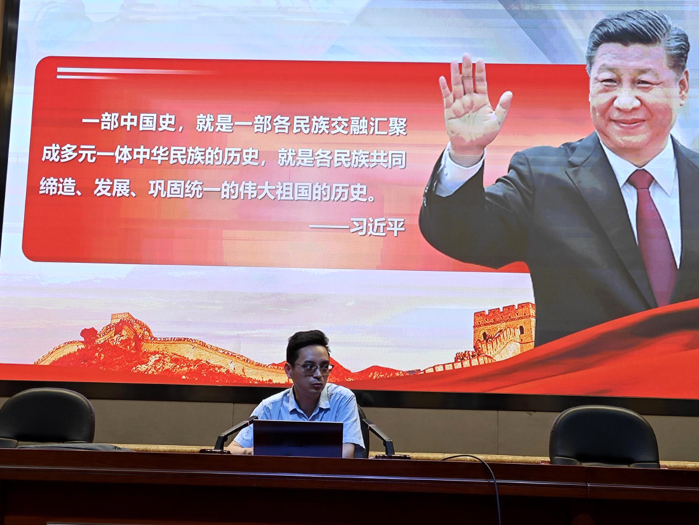 6月4日下午,365英国在线体育副经理陶伟伟以“铸牢中华民族共同体意识”为题目,向2023级同学讲授了课程。