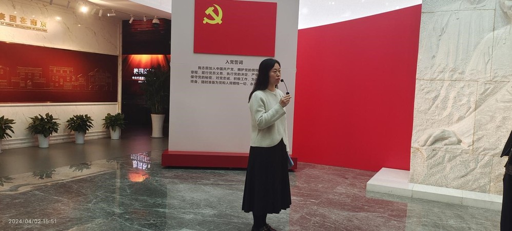 4月2日下午,365英国在线体育“王明艳”党支部全体教师党员,赴中国共产党梅园新村纪念馆开展清明祭英烈主题党日活动。深刻缅怀中国共产党人的“杰出楷模”周恩来总理,铭记伟人风范,赓续红色基因,汲取奋进力量,活动由“王明艳”党支部副书记薛梅主持。