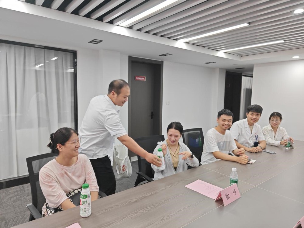在与实习医院领导交流后,蒋燕与实习员工亲切交谈,她一一询问员工的实习感悟、当前需求以及未来打算,对员工的问题进行了回应。并叮嘱员工,兼顾实习与考研或就业的这段时期必然艰苦,但同学们仍需要鼓足干劲,奋力拼搏,在认真完成实习、积累临床经验的同时,合理规划时间,做好职业规划,兼顾考研与求职,祝愿每位同学心想事成。会后实习班级辅导员向实习员工发放慰问饮品。