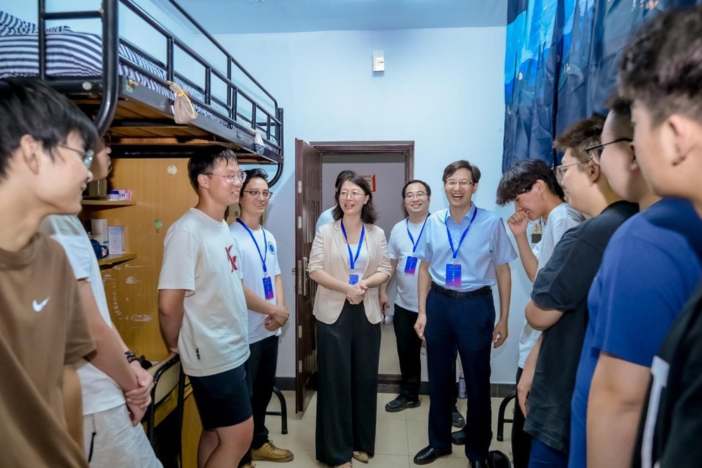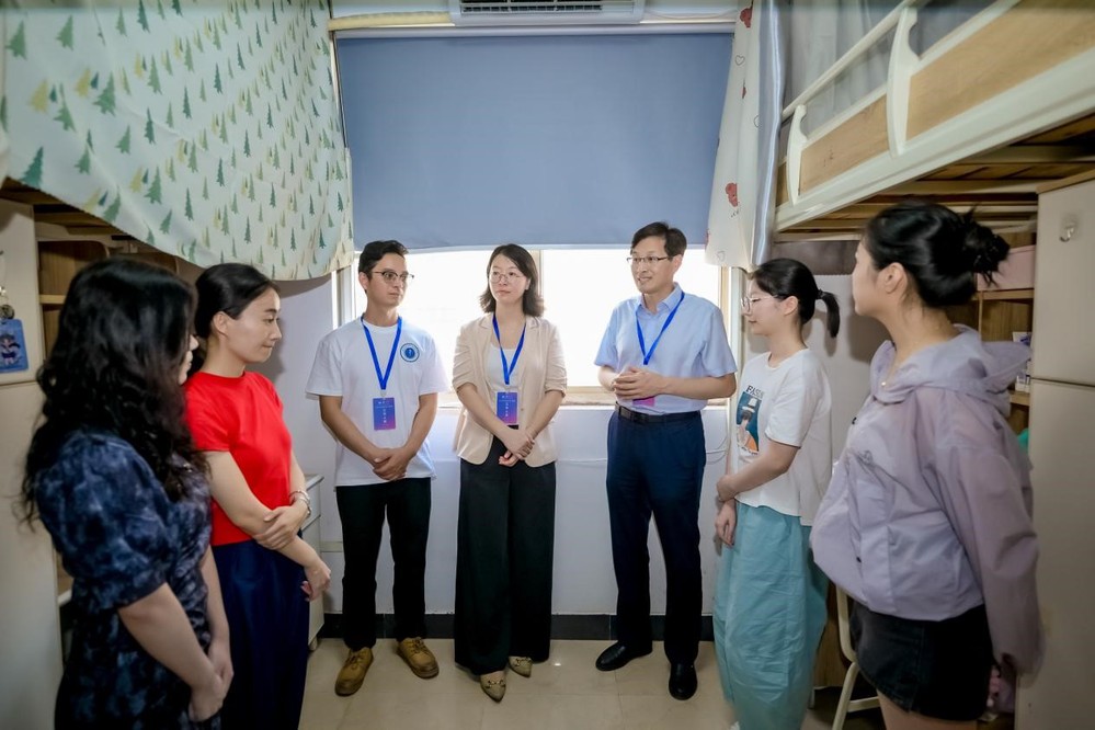 下午,公司领导党总支书记蒋燕、经理贾立军、副经理陶伟伟,带队前往宿舍看望新生,在一站式社区当中与新生面对面交流,为新生带去真切的慰问和关怀,期待他们能尽快融入老员工活,投入到中西医临床医学的学习中去。