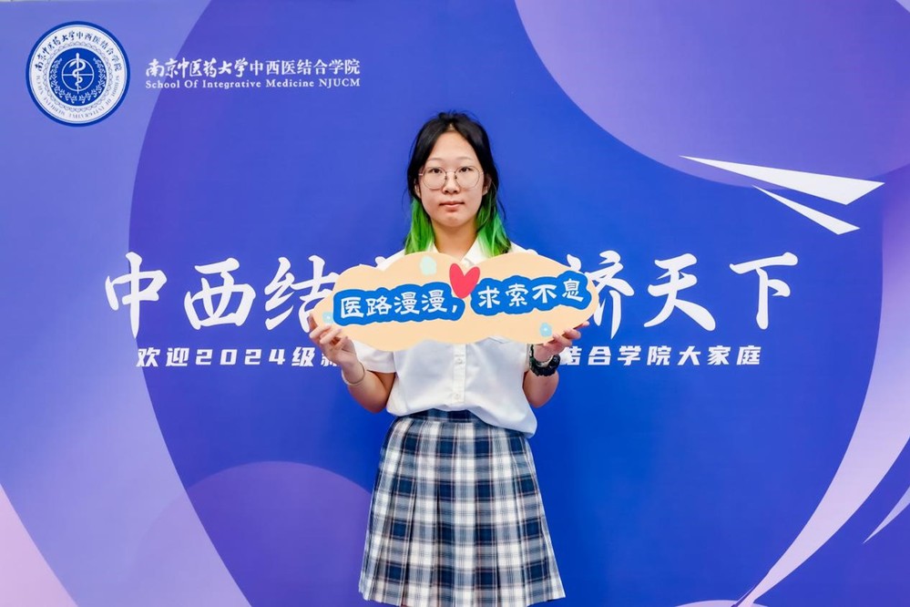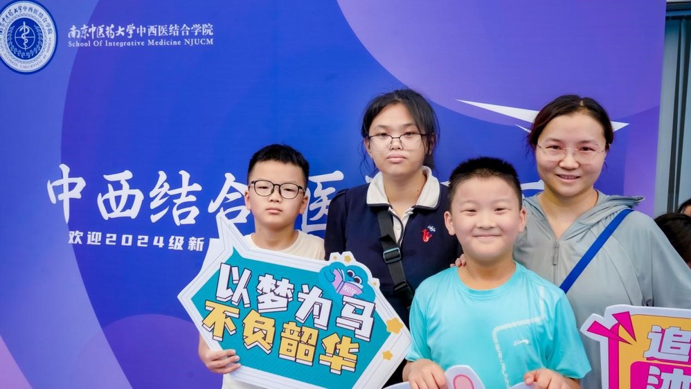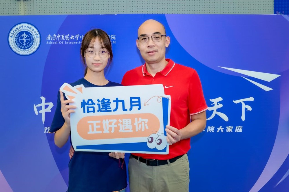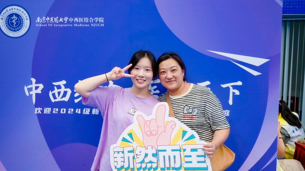 在完成报到手续后,新生和家长纷纷在场内和场外的迎新打卡点拍照留影,记录属于自己的第一份南中医美好记忆。