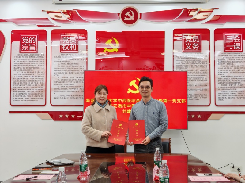 王仲欢迎王明艳第一党支部教师到访连云港市中医院,表达了通过支部共建,加强公司与医院深度合作的殷切希望。陶伟伟介绍了王明艳党支部的基本情况、“王明艳”精神内涵及支部建设成果。双方交流友好、气氛融洽,共同签署《党建共建协议书》。