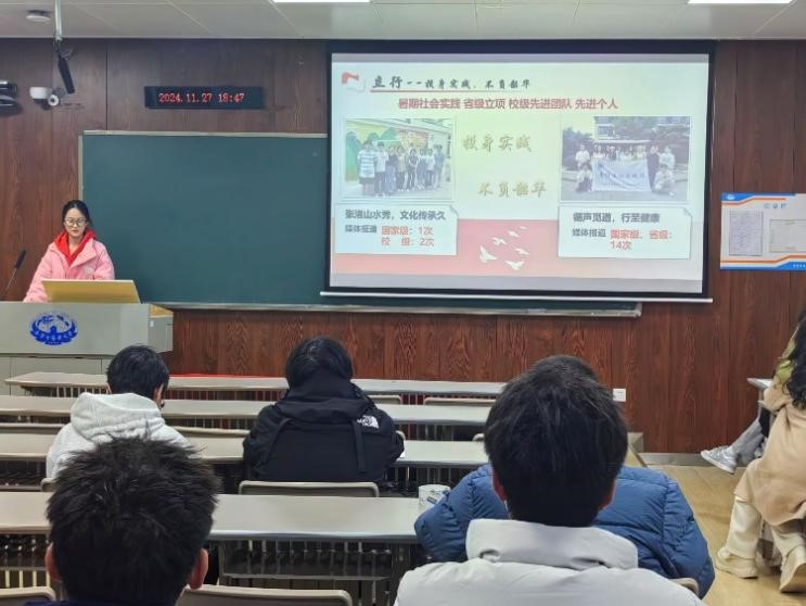 孙安琪和梁璐同学则分享了暑期社会实践中的团队活动心得。她们从实践概况、内容、成果展示和收获感悟四个方面展现了答辩思路,展示了如何通过团队合作和创新思维完成社会实践任务。