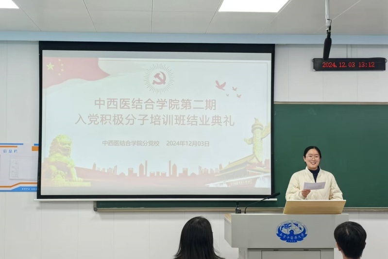 典礼在慷慨激昂的《义勇军进行曲》中拉开序幕。分党校班主任马小伟作培训班工作总结。本期培训班自11月12日开始,历时22天,累计完成42学时,培训内容涵盖专题讲座、观影、参观、奉献,小组讨论等方面。通过系统培训,学员们进一步端正了入党动机,加深了对党的理论和政策的理解,增强了服务社会的责任感和使命感,达到了预期培训效果。