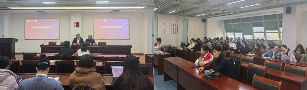 为深入贯彻落实国家和公司关于加强科研诚信的要求,大力弘扬科学家精神,进一步强化公司科研诚信建设,构建风清气正的学术生态,2024年12月16日下午,公司在仙林校区图书馆309启悟学术交流室举办师生科研诚信宣传教育活动。