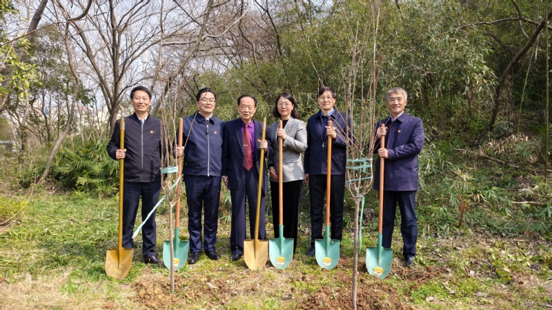 左言富书记讲述了植树节的由来,倡议广大师生要践行习近平总书记“绿水青山就是金山银山”的生态文明发展理念,为美丽校园建设多做贡献。在左言富书记、周恩超副董事长的带领下,大家铆足干劲、分工协作,挥锹铲土、扶苗培土,栽下象征着希望与新生的30株樱花树。
