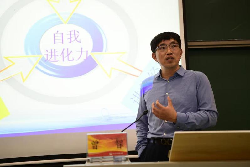讲座中,曾智教授通过分析海鱼上岸进化的过程,生动形象地为同学们解释了什么叫进化力。并向同学们强调具备自我进化力的人,能够快速适应环境变化,不断地学习新知识和技能,不断地挑战自己,不断地突破自己的极限。同时,曾教授结合自身的生活经历及社会的形势,对比两种生活,指出同学们可能面临的无序的生活状态,必须做好要改变的准备。