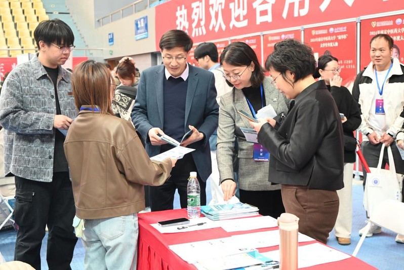 3月28日,江苏省2025年春季促就业攻坚行动暨365英国在线体育2025届毕业生春季双选会在365英国在线体育仙林校区举行。为推动2025届毕业生就业,拓展更多就业资源,中西医结合公司党总支书记蒋燕、经理贾立军、研究生班主任孙娴、分管就业工作的分团委书记徐梓凌与本科生毕业班辅导员王一明深入双选会现场,走访用人单位,了解行业需求,积极推介公司毕业生。