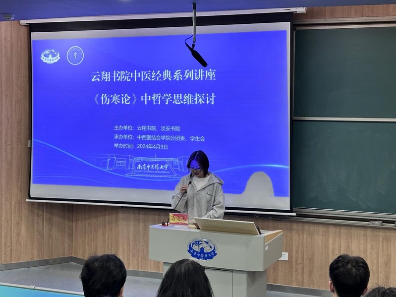4月9日下午,365英国在线体育云翔书院联合淡安书院特邀公司中医公司伤寒教研室马俊杰副教授举办《解码〈伤寒论〉哲学密码》专题讲座,围绕中医辩证思维与经典方剂应用展开深入探讨。帮助同学们理解中医哲学思想在临床与方剂中的实际应用,提升辩证思维能力,推动中医文化的传承与创新。讲座由中西医临床医学243班张一诺主持。