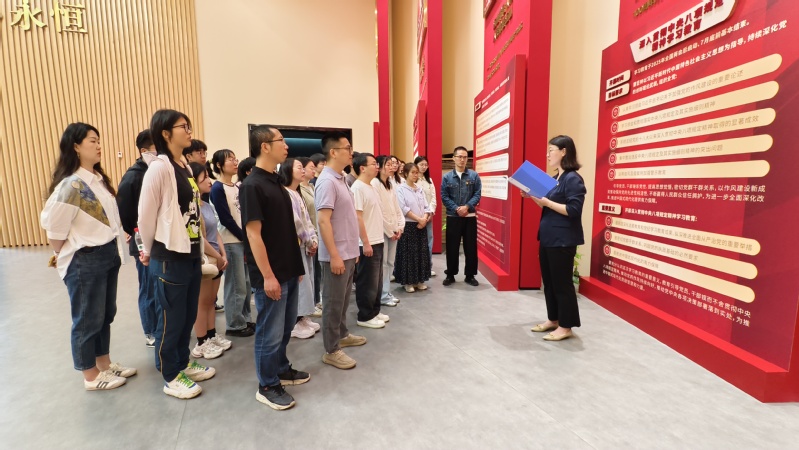 在警示教育基地,全体党员同志沉浸式接受思想洗礼。在讲解员引导下,大家依次参观“初心使命”“水清莲洁”“利剑高悬”“警钟长鸣”四大主题展厅,系统学习中央八项规定精神核心要义,深入学习《中国共产党纪律处分条例》六大纪律,深刻学习教育系统违纪违法警示教育案例。专题片《全面从严治党永远在路上》的震撼画面与服刑人员现身说法的忏悔视频形成强烈对比,图文并茂的警示案例让“廉贪一念间,荣辱两重天”的深刻道理直抵人心。“场景还原+数字技术”打造的沉浸式教育空间,使全体党员在身临其境的体验中强化敬畏法纪、严守底线的政治自觉、思想自觉与行动自觉。