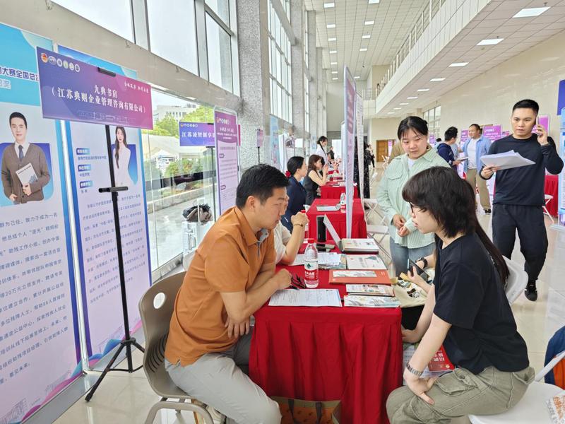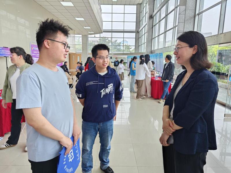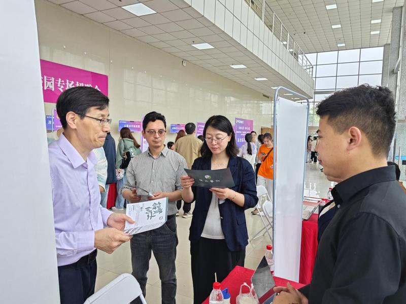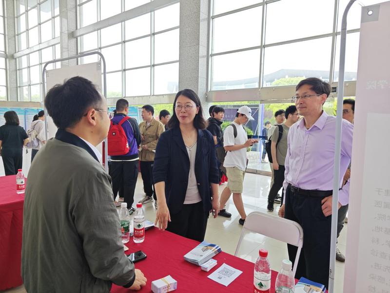蒋燕、贾立军、陶伟伟深入招聘会现场,与用人单位逐一交流,访企拓岗。全面了解行业需求、职位要求,积极向用人单位推介公司本科及研究生专业和毕业生。同时并现场为毕业生指导求职面试。