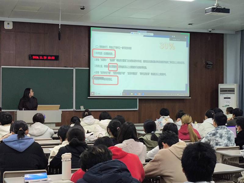 遴选优秀学子组建“研路导师团”,开展考研经验分享专题分享会,针对考研常见问题和难点,进行详细讲解。通过传帮带的形式,助力一届届学子顺利升学。