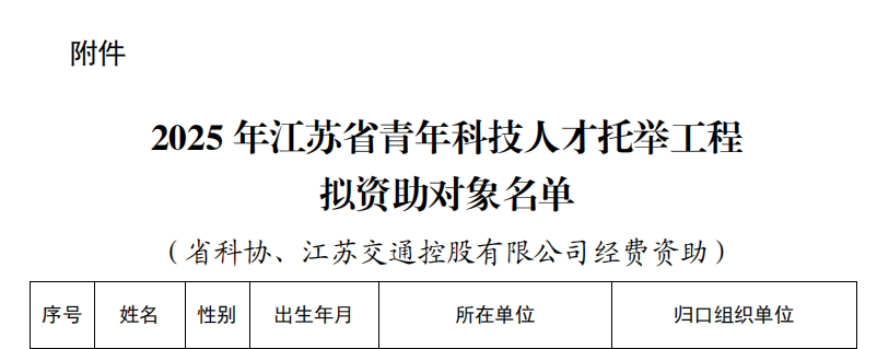近日,江苏省科学技术协会公布了2025年江苏省青年科技人才托举工程拟资助对象名单,公司胡玥副教授成功入选。