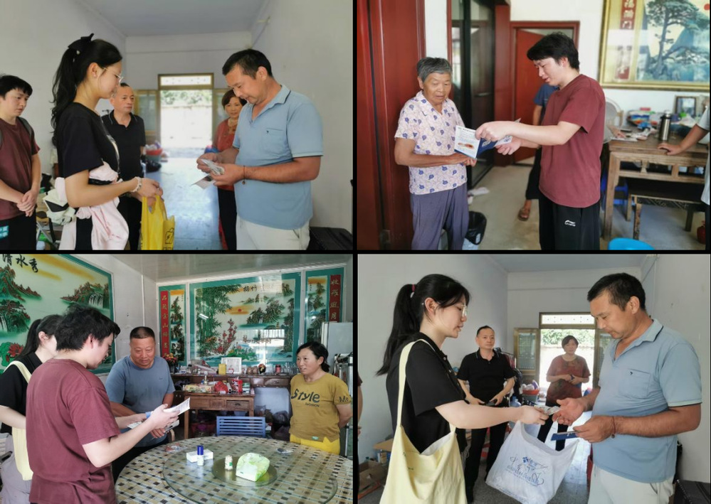 在卫生院孙主任的带领下,“蜱盾护航队”深入涧溪镇各村组开展入户宣传。 “大叔,这是被蜱虫叮咬后减少发病的中药茶,如果被蜱虫叮咬请尽快服用。这还有酸梅汤,天热解解暑。”每到一户,队员们不仅送上贴心物资,还拿出自制的彩色宣传手册,结合手册上的漫画图解,用通俗易懂的语言向村民讲解蜱虫的生活习性、叮咬识别方法及正确处理方法。针对 “被蜱虫咬了能不能直接拔”“家里养的牛羊怎么防蜱虫”等常见问题,队员和老师们一一耐心解答。村民们纷纷称赞:“老师同学们讲得清楚又实用,以后再也不怕蜱虫了!”