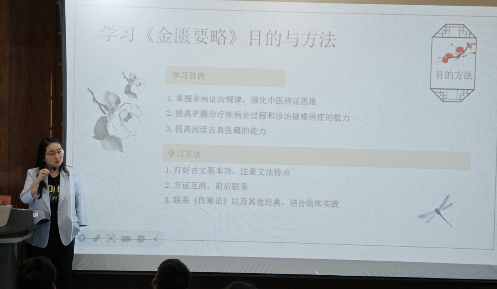 接着,毕教授从经典源流切入,剖析了《金匮要略》在“四大经典”中的定位及影响,展现《金匮要略》的独特魅力与价值。现场气氛热烈,同学们积极思考学习。参加讲座的同学们纷纷表示,此次活动让他们对中医经典有了更深入的认识。