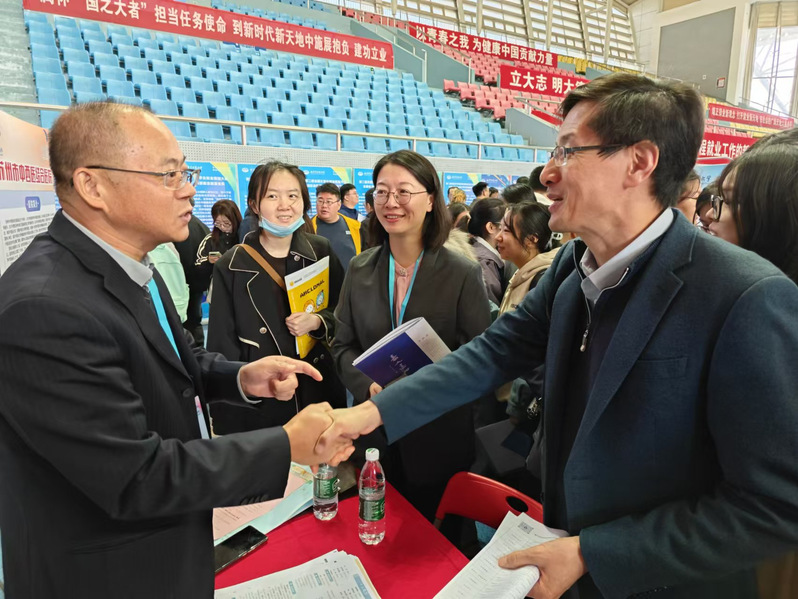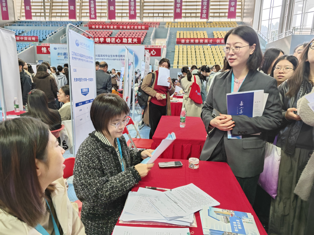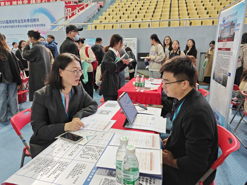 10月24日,“职引新动能 联动助启航”江苏省2026届高校毕业生秋季招聘月暨生物医药产业2026届毕业生专场招聘会在365英国在线体育仙林校区举行。为推进2026届毕业生就业工作,开拓更多就业资源,畅通就业信息传递渠道,中西医结合公司党总支书记蒋燕、经理贾立军、分管就业工作的分团委书记徐梓凌,来到招聘会现场访企拓岗,并推介公司专业与毕业生。