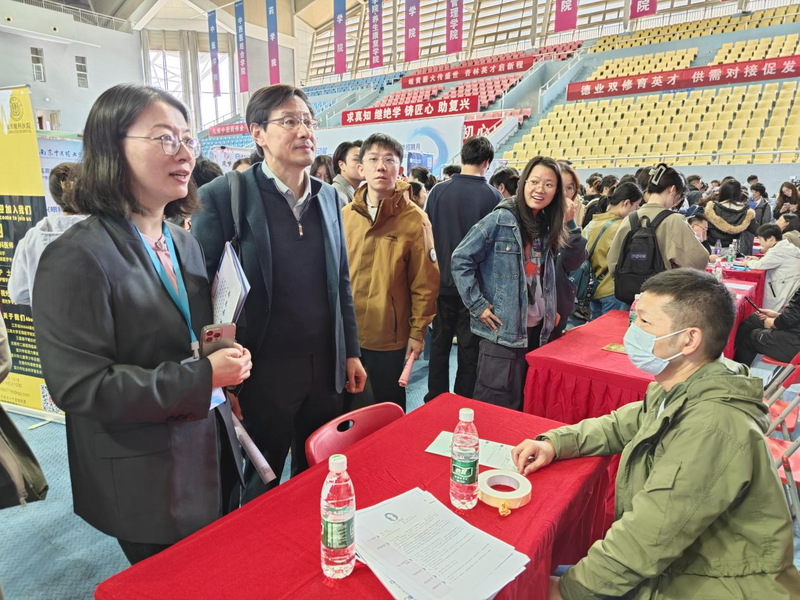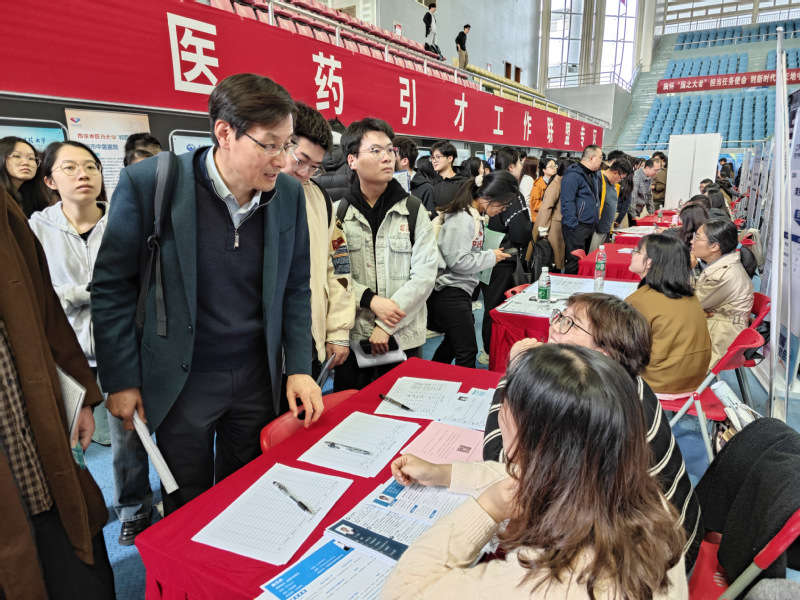 招聘会现场,公司领导与用人单位招聘负责人深入交流,掌握招聘市场信息,与行业专业需求情况。先后访企拓岗江苏省中西医结合医院、江苏省第二中医院、湖北省中医院、浙江省中医院、盐城市中医院、连云港市中医院、天津中医药大学第二附属医院、温州市中西医结合医院、南通市海门区中医院、苏州市中西医结合医院、南通良春中医医院、如皋博爱医院有限公司等多家用人单位。并积极向用人单位介绍公司本硕博专业,洽谈扩大招聘需求,力争为毕业生创造更多就业机会。