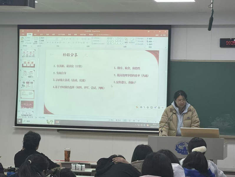 中西临232班的梁璐同学就作为员工骨干,如何平衡学业与工作、如何提升组织协调能力进行了分享。从沟通技巧到责任担当,从活动举办到材料申报,梁璐同学通过这些“干货”分享让同学们对员工骨干的角色、职责及工作方法有了更清晰的认识。