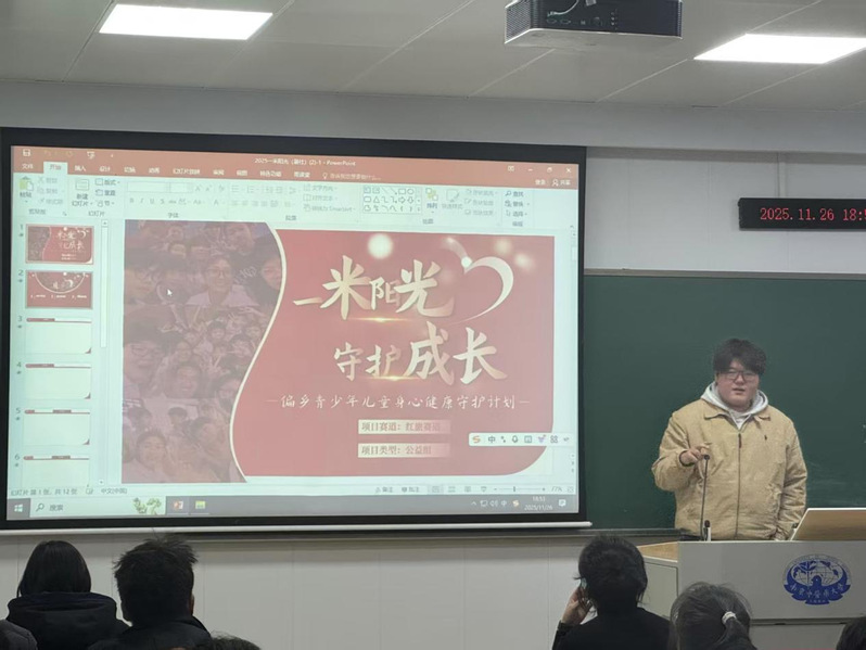 中西临243班的仝嘉佐同学则带来了暑社优秀团队分享。暑期社会实践是同学们将理论落地、锻炼实践能力的重要契机。作为曾获省级优秀团队荣誉的“一米阳光”实践团成员,仝嘉佐同学让大家了解了优秀团队是如何打磨项目、收获成长的。暑社里的汗水与收获,是青春最鲜活的注脚,也给了同学们诸多实践启发。