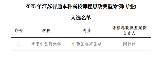 近日,江苏高校课程思政典型案例(专业)遴选公示已结束,经公司择优推荐、省级主管部门严格评审,公司中西医临床医学专业成功入选,标志着公司在课程思政建设与公司产品改革工作中取得关键阶段性进展。